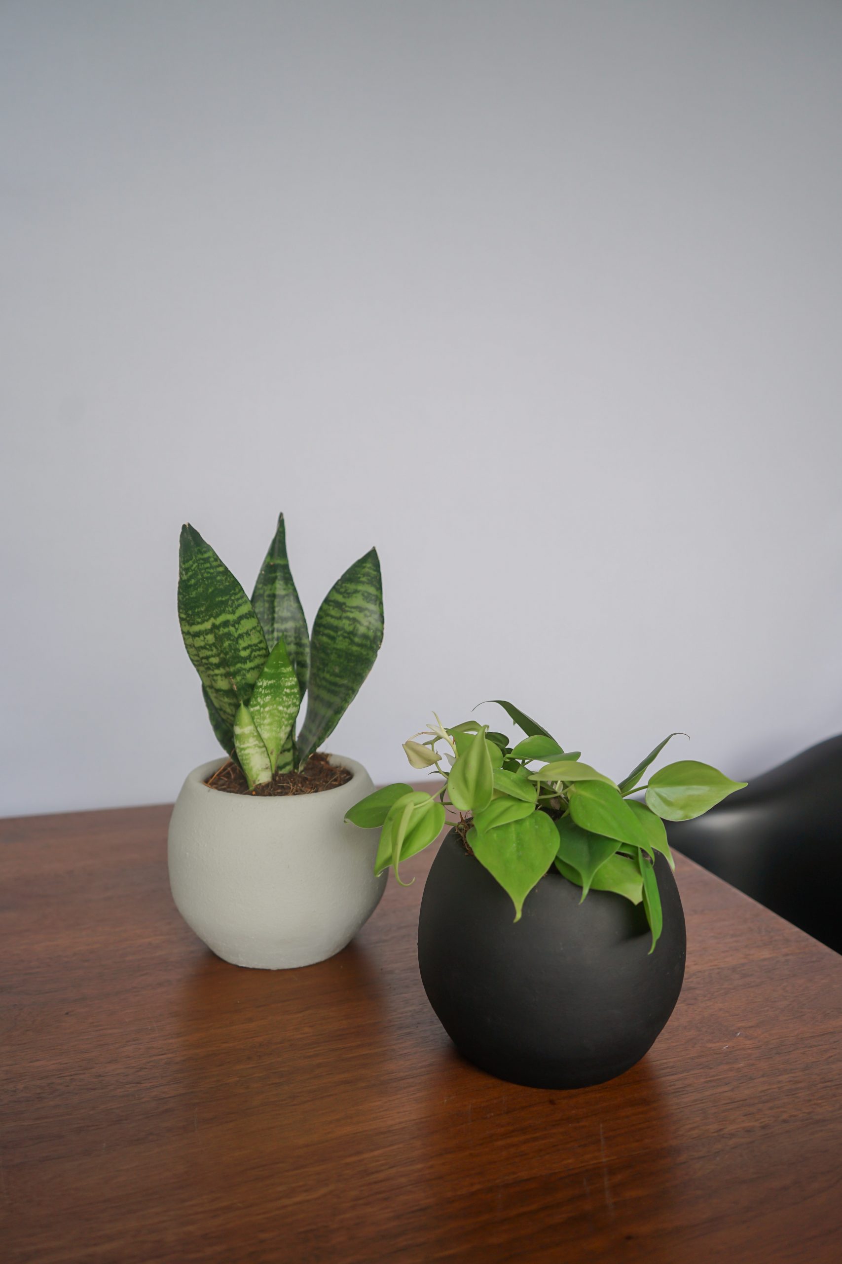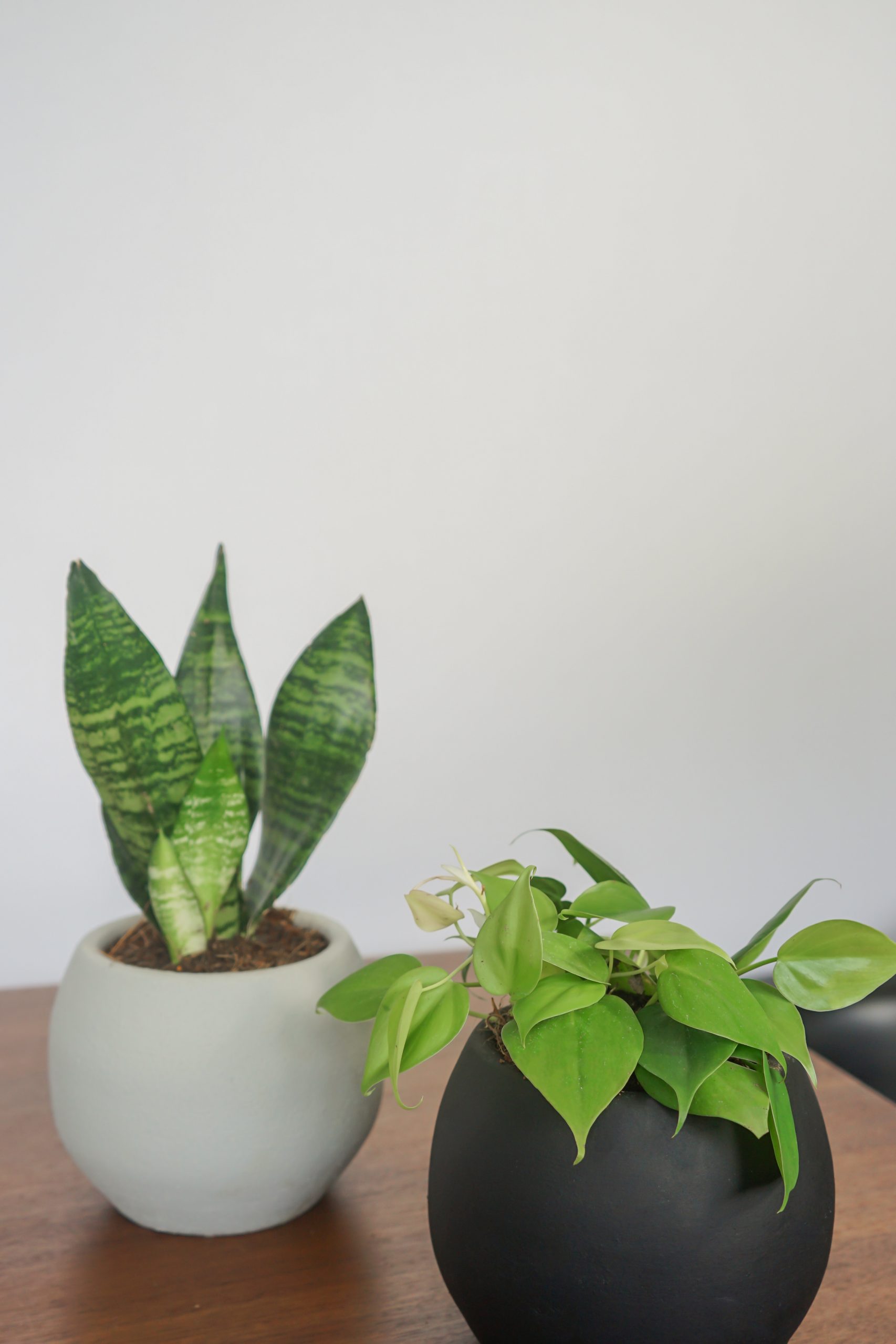1 Dwarf Snake Plant, 1 Heartleaf in